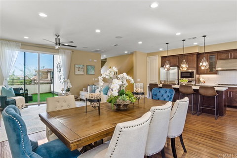 ORIGINALLY A MODEL HOME!!! Entirely upgraded with luxury touch! This stunning 4 Beds 3.5 bath home has over 200K worth of upgrades. As you enter into the entry foyer, you will see a guest room that includes a full bath, with a walk-in shower along with direct access to the two-car garage, and also one assigned parking space outside next to the garage. Second floor features a grand great room with all-natural lighting throughout. The stunning Chef's kitchen features many beautiful appliances and touches such as an oversized kitchen island, Monogram stainless steel french door refrigerator, designer taste pendant lights, Monogram cooktop hood, and much more. Additional kitchen features include upgraded shaker cabinets, beautiful white quartz countertops, and a built-in wine/beverage center. You can also enjoy the beautiful deck with a glass of wine while looking at the sunset. The third floor features two secondary bedrooms, one full shared dual-sink bathroom, and the master suite. Master suite features dual sink for him/her, walk-in shower, seperate soaking tub, and privacy toilet . Other featured upgrades include luxury carpet throughout 3rd floor, wood flooring throughout the first and second levels, all staircases as well, and much more. Great park is one of the most sought out family communities in Irvine. HOA includes amazing amenities such as the fantastic pools and numerous parks ,walking distance to Cadence shcool (K-8), a few minutes from Woodbury town center plaza, high way 5 and 241, 5 minutes away to the Great park ice Rink, The Great Park, and the coming grand opening water park in this summer of 2022. You will find this is the perfect home and never want to lose this opportunity.