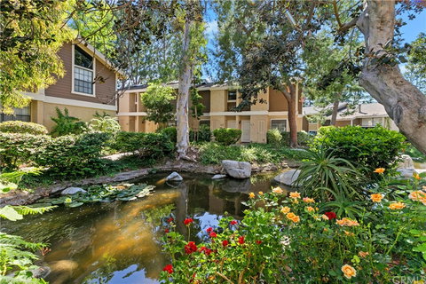 This warm and inviting townhome in the beautiful Lakes Community located in the Northwood area of Irvine is a MUST SEE!! Extremely well-maintained featuring 2 bedrooms, 2.5 bathrooms and a large storage area above master bath that includes air/heat and lighting. You will love the open concept dining and living area right off the kitchen. Living room has a cozy fireplace and custom built-ins for storage. Spacious kitchen has granite countertops, stainless steel appliances and a functional breakfast bar. There is direct access to a serene patio to enjoy the lush view of a garden and creek. The main level offers a powder room for your guests. Upstairs you will find two bedrooms including the master bedroom with high ceilings and connected bathroom. Upstairs you will also find a secondary bedroom and bathroom. This is a fantastic floorplan with all the amenities. HOA includes water and trash, pools, spas, tennis courts and walking paths. Award winning distinguished schools are walking distance. Freeways and all the shopping you need are nearby! No Mello-Roos!
