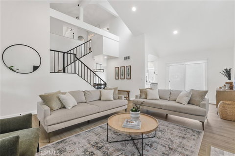 Nestled in the highly sought after Irvine Woodbridge Village, this completely renovated 3-bedroom, 2.5 bathroom house embodies a perfect blend of comfort, modern living, & timeless charm. Key features of this home include the spacious living area where you step into a bright living room featuring a newly custom designed fireplace, vaulted ceilings and large windows that flood the space with natural light. The open floor plan seamlessly connects the living area to the dining room, creating an ideal space for entertaining guests or enjoying cozy family evenings. The modern kitchen has been beautifully updated with quartz countertops, stainless steel appliances, shaker cabinets with soft close drawers, custom full tile backsplash and a porcelain single basin farmhouse sink. The home offers three spacious bedrooms and all bathrooms have been tastefully renovated with modern fixtures, sleek vanities, and elegant tile work. The primary bathroom includes a custom frameless barn style shower glass door and a fully Italian tile wall to exude elegance and luxury. Lastly, savor the sunny and spacious backyard, perfect for family time, relaxing or entertaining. Additional recent upgrades include recessed lighting, light fixtures, luxury waterproof laminate flooring throughout the home, exterior paint, front yard landscape, custom closet doors in the primary bedroom, custom window treatments, smart thermostat, interior doors, dual paned windows, and electrical dimmers. This home also includes an attached two-car garage with new epoxy floors and new storage units. This home is ONLY ATTACHED at the garage. Additionally, this home provides a highly desirable location as it is located within walking distance to Springbrook Elementary School & South Lake Middle School, and is close distance to Woodbridge High School, all part of Gold Ribbon IUSD, as well as the South Lake and Beach Club Lagoon. The Woodbridge community offers unmatched resort-style amenities, including two lakes, pools, spas, tennis courts, pickleball courts, splash pad, numerous parks with playground equipment, outdoor fitness course, basketball, volleyball, bocce ball, & a wide range of family-friendly activities. This home is close distance to the Alton Square and Woodbridge Village Shopping Centers. Low HOA dues and no Mella-Roos! Don't miss the opportunity to make this stunning house your forever home!