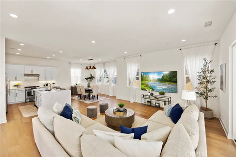 Welcome to 218 Follyhatch, nestled in the highly sought-after community of Beacon Park. This exceptional residence is a part of the exclusive Brio Collection by Shea Homes, representing the pinnacle of modern living. Set in Irvine's most desirable neighborhood, this upstairs single-story flat offers a harmonious blend of luxury, comfort, and convenience. Upon entering, you'll be greeted by the warmth of hardwood floors that lead you through an inviting foyer into a captivating open-concept floor plan. With three bedrooms and three bathrooms, this home offers ample space for both relaxation and entertainment. The well-appointed kitchen is a culinary masterpiece, featuring a central island adorned with elegant quartz countertops, creating the perfect backdrop for gourmet creations. The kitchen seamlessly flows into the expansive living and dining areas, highlighted by tall ceilings and bathed in an abundance of natural light. Large sliding doors open to reveal a spacious deck, perfect for al fresco dining or simply enjoying the serene surroundings. Imagine spending evenings watching the sunset or hosting gatherings with friends and family in this outdoor oasis. Privacy and comfort abound in this thoughtfully designed layout, where each bedroom boasts its own private bathroom, ensuring a retreat-like experience for every member of the household. The master suite is a haven of tranquility, with its generous proportions, walk-in closet, and a spa-like attached bathroom featuring dual sinks and a luxurious walk-in shower. Convenience is key, and this residence excels with a direct access 2-car garage and a convenient laundry room, making everyday tasks a breeze. Beyond the confines of this elegant home, the Beacon Park community offers an array of resort-style amenities to enrich your lifestyle. Embrace the outdoors with numerous parks, take a dip in the Olympic pools, relax in the spas, or engage in friendly competition on the basketball courts. The club rooms and Arts & Crafts Center provide spaces for socializing, creativity, and leisure, ensuring there's always something exciting to do. Families will appreciate the esteemed Irvine Unified School District, with the added privilege of being zoned for the prestigious Portola High School, setting the stage for an exceptional educational journey. Don't miss the opportunity to call 218 Follyhatch your home.
