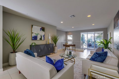 Stunning Manhattan townhouse-style home spanning approximately 2251 square feet that offers the optimal indoor outdoor living experience. Inside this 3 bedroom 2 1/2 bath home, discover open and airy living spaces highlighted by an array of custom finishes including main living area and bathroom flooring, designer window treatments, custom paint, high volume ceilings, recessed lighting, spa-quality master bathroom, large walk-in closets, exceptional natural light, private location and more, the entire property has been thoughtfully considered. Also featuring two large outdoor balconies with park and Irvine Financial District views. This highly sought-after open-floorplan features a chef inspired kitchen with a large island, quartz countertops, modern cabinetry and stainless steel appliances. The deluxe property also includes a rare oversized finished private three car garage with additional storage and direct access to the interior of the home. The property lives like a single family home, there are no other units above or below the residence. In addition, the Manhattan enclave offers one of the lowest HOA fee's in all of Central Park West. Resort-style amenities include two heated swimming pools, resort-style clubhouse, state-of-the-art fitness center, exercise/yoga studio, outdoor spas, large multi-purpose room, lounge with bar and fireplace, catering kitchen, outdoor barbecue areas, entertaining terrace with large fireplace, pickleball court, half-basketball court, tot lot, and mini-parks. Convenient to Fashion Island, South Coast Plaza, UCI, John Wayne Airport and beautiful OC beaches.