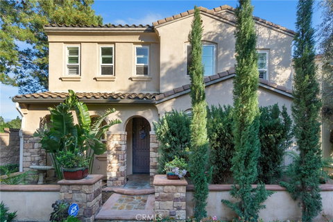 Nestled in a picturesque setting, this charming home exudes elegance and privacy. With its inviting courtyard perfect for entertaining, the house boasts a spacious layout designed for comfortable family living. The bright and airy great room welcomes guests with its cozy fireplace and large windows, adorned with custom built-ins and elegant fixtures. The chef's kitchen is a delight, featuring ample cabinetry, granite countertops, and a generous island overlooking a casual dining area. French doors open to a beautifully landscaped courtyard with a soothing water feature and custom barbecue, offering unparalleled privacy. A downstairs library provides versatile space for work or play. Upstairs, the luxurious master suite beckons with a separate retreat, spa-like bath, and walk-in closet. Additional bedrooms, including one on the main floor, add value and convenience. Situated in the sought-after Irvine School District and close to community amenities, this home presents a rare opportunity at an attractive price.