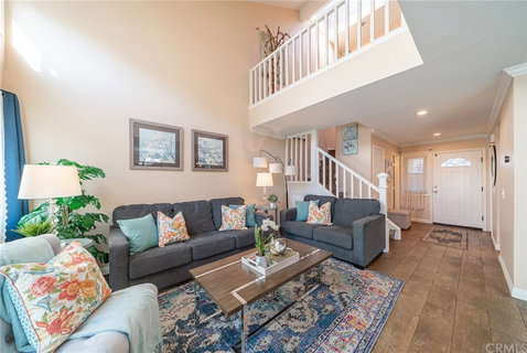 Bring your best offer....Please come and show this beautiful home... close to all shopping. Welcome to 5212 Walnut. This gorgeous house that has been upgraded throughout with tiled entryway, hard wood floors on the second floor, upgraded bathrooms and kitchen, entertainers backyard, it also has low HOA and no Mello Roos. Centrally located in the heart of Irvine. This house is a steal !! As you enter through the front door, you're greeted by a spacious family room and adjacent gourmet kitchen with new appliances and ample room for dining and entertaining alike. The high ceiling living room and stairs are lit throughout the day with roof skylight. A very large backyard offers room for relaxing and entertaining, all while allowing substantial privacy and peacefulness. The large master suite is located upstairs, featuring a luxurious master bath, walk-in closet, and private balcony. Two additional spacious bedrooms have lots of natural light. Newer water heater and garage door. The whole community has gone through complete renovation during last year from front exterior with brand new windows and brand new garage doors and paint. New closet doors. Enjoy the fresh home grown avocados from the backyard tree. Close to the 5 Fwy, 99 Ranch, and tons of dining options.