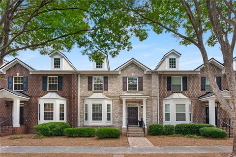 Impeccably maintained and updated condominium styled townhouse located in the backyard of the historic Kennesaw Mountain area. The home features beautiful curb appeal with an HOA maintained exterior. The front entrance welcomes you with 9' ceilings, hardwood floors, plantation shutters and crown molding throughout. The dining room is to your left with updated lighting, chair rail, and bay windows, and a half bath is to your right. The kitchen has quartz countertops and high-end appliances with a cut out to view the amazing greenery that is behind the home. The large living room has a ceiling fan, fireplace with upgraded gas logs, extra wide crown molding, access to the deck, and a wall of windows. The berber style carpeted upper level features a spacious primary suite that faces the greenery at the rear of the home and features a highlighted tray ceiling, tropical ceiling fan, walk in-closet, plantation shutters, and a coordinated ensuite with dark countertops and updated lighting. There are also two guest bedrooms upstairs with plantation shutters, berber carpet, and ceiling fans as well as a guest bathroom and the hallway laundry. The lower-level features access to the two-car garage, a full bathroom and a large flex room that can easily be used as an additional bedroom, media room, or office. The large deck features tranquility at it best with a covered gazebo and fan. The rural tree-lined view, is where you will spend cool shaded hours relaxing in the evenings. There is also a large attic storage space. The community is gated, has a private pool and charming pool house and a central mailbox location. Welcome home to 1412 Ferocity Ridge Way!
