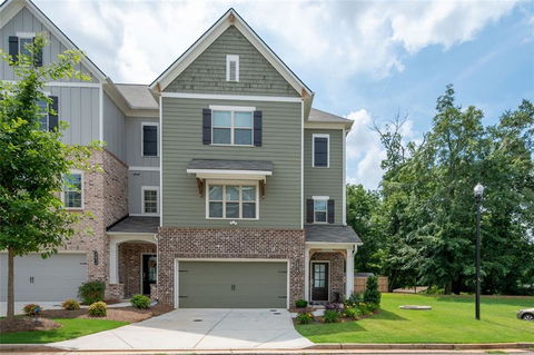 This beautiful end unit townhome is only 2 yrs old & is in the highly sought-after Village of Fullers Chase community. It's located in the heart of downtown Kennesaw & walking distance to all of the great shops and dining Kennesaw has to offer. This gorgeous townhome features $10k in upgrades including a GE appliance package, under decking installed on the back patio along with a ceiling fan, & built-in bookcases addition to the family room. This end unit has lots of natural light & boasts 9'+ ceilings, high baseboards, engineered hardwoods throughout & high-quality gra de carpet. The stunning foyer with its gleaming hardwoods will greet your guests with open arms. The gourmet kitchen features quartz countertops, stainless steel appliances, bar seating, plenty of cabinet space, subway tile backsplash & farmhouse style sink. The open floor plan continues with the dining room & the family room. The family room features a gas fireplace, built-in bookcases, and plenty of room to host your friends & family. The deck is ready for your Summer & Fall gatherings. The powder bathroom is appointed with a beautiful marble counter. The luxurious master bedroom is on the upper floor and features a sitting area & walk in closet. The spa-like master bath boasts tile flooring, double vanity, & tiled shower w/ tiled bench seating. There's an additional bedroom with a full, private bathroom. The laundry room is conveniently located on the 2nd floor. The lower level features a guest bedroom suite, with full, private bath....perfect for guests, teen living or an office! The community is within walking distance to Depot Park & downtown Kennesaw. Just over a mile to Swift Cantrell Park & less than 2 mi to KSU! See for yourself the exciting growth of downtown Kennesaw!