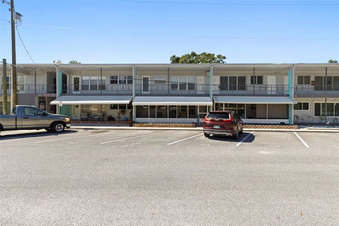Welcome to Palms of Paradise East (formerly Clearview Oaks), a vibrant, pet-friendly 55+ community where comfort meets convenience. This desirable ground-floor 2-bedroom, 1-bath condo is move-in ready and not located in a flood zone. Your assigned parking space sits just steps from the screened front porch. Inside, wide-plank vinyl flooring flows through a bright living and dining combination. The adjacent kitchen features granite countertops, a stylish su...