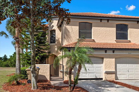 Location! Location! This four bedroom, three and a half bath is a corner unit in the beautiful, gated community of Villa Sol. One of the bedrooms is downstairs with it's own bathroom. Community offers amenities such as tennis and basketball courts as well as a pool and fitness center. Home is walking distance from shopping centers such as Walmart, and is located minutes from the MCO International airport, Lake Nona, and very popular theme parks. Also, zoned for long- and short-term rentals! Seller is very motivated and open to all offers.