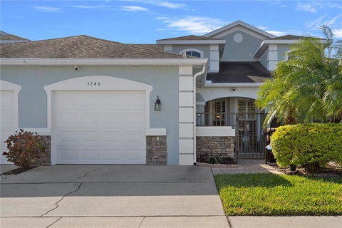 Experience the epitome of resort-style living in this meticulously maintained 2-bedroom, 2-bathroom villa located within the exclusive gated community of Sterling Park at Stonefield. The interior radiates modern elegance with soaring ceilings, crown molding, and premium porcelain tile flooring throughout a bright, open-concept layout. At the heart of the home, the chef-inspired kitchen shines with crisp white cabinetry, granite countertops, and stainless steel appliances, seamlessly flowing into a sun-drenched dining area. Retreat to the spacious primary suite, complete with custom shutters and a spa-like ensuite featuring a dual vanity and a frameless glass walk-in shower. Beyond the glass sliders, your private screened-in lanai offers peaceful, unobstructed views of the community’s lush greenspace—perfect for quiet Florida mornings. With the HOA handling lawn and exterior maintenance, you’re free to enjoy the resort-style pool, fitness center, and tennis courts, all while being minutes away from world-class shopping at The Loop and major Orlando attractions.
