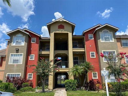 Under contract-accepting backup offers. Renovated 1st floor unit, FULLY FURNISHED with 2 master bedrooms and a WATER VIEW! Located in Villas Del Sol, a beautiful, gated resort style community. The community is well maintained with lush landscapes and tons of amenities including 2 pools, a spa, tennis court, fitness center, outdoor grills, and more. SHORT TERM and Long-term rentals allowed. This unit has been updated with modern flooring, kitchen, baths, lighting, ceiling fans, paint, baseboards and new in unit washer and dryer with warranty. Perfect LOCATION! Only 5 miles to Disney! Lots of restaurants and shopping in the area. Don't miss out on this AWESOME opportunity! Call for a showing today!