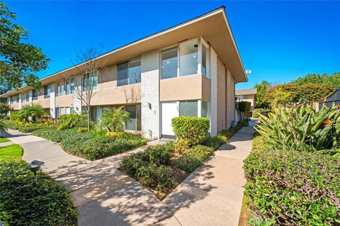 Beautifully remodeled, turnkey mid-century modern end-unit townhouse nestled in the heart of the desired Woodridge Towne House community in La Habra. Step into the home onto brand new New Point Coastal Pine luxury vinyl plank floors which flow throughout the ground floor. The remodeled kitchen features all new quartz countertops, white Shaker-style solid wood cabinets and drawers with matte black handles and pulls, stainless steel Frigidaire gas range and dishwasher, range hood, stainless steel sink with matching matte black faucet, and recessed lights. A large sliding glass door brings in abundant natural light and provides access to the front grounds. The kitchen adjacent great room is spacious and allows for seamless dining and family room space and is highlighted by the centrally located fireplace with brick surround and quartz hearth. The sliding glass patio doors on each side of the fireplace allow for great indoor-outdoor flow from the family room to the private back patio. A half bath and various storage closets adjacent to or below the stairs complete the ground floor. A unique 3/8" tempered glass feature set in a solid bronze channel and pendant lights give the stairway a modern look. Freshly installed gray carpet flows up the stairs, down the hallway with tons of storage space, and into the bedrooms. The primary bedroom suite is large and features two a closets with mirrored closet doors, recessed lights, a ceiling fan, two large windows overlooking the front grounds, and primary bathroom. The primary bathroom features single vanity with quartz countertop, standup shower, and matte black fixtures. The hall bath features a single vanity with quartz countertop and shower over tub with matching matte black fixtures. Bedrooms 2 and 3 feature recessed lights, ceiling fans, mirrored closet doors and windows with a pool view. Located in the back patio is the laundry closet with hookups for a stackable washer and gas dryer. The open air private back patio affords for comfortable outdoor living and is situated between the back of the unit and the private direct door accessible carport with bonus storage. In addition to the dedicated carport space, there is abundant nearby resident and guest parking. The community features a sparkling swimming pool, picnic areas, and community laundry rooms. Conveniently located near restaurants, shops, and more. Move-in ready! What more can you ask for? Do not wait! Hurry before it's gone!