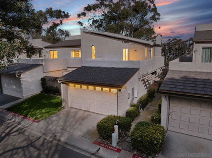 Offering the privacy and presence of a detached residence, this fully updated home in La Jolla Village Estates opens to breathtaking city views that unfold the moment you step inside. Designed to capture abundant natural light and sweeping scenery, the home features dual-paned windows throughout and fully owned solar for exceptional efficiency and minimal electric costs. A beautifully appointed kitchen anchors the living spaces, while a cozy fireplace adds warmth and ambiance to the main living area. Seamless indoor-outdoor living defines the home, with two expansive patios and a private balcony, including a wraparound entertaining terrace perfectly positioned to showcase dramatic city lights and unforgettable sunset views. The spacious primary suite offers a serene retreat with direct balcony access, ideal for morning coffee or evening relaxation. Residents enjoy resort-style community amenities including a pool, spa, and playground, all set within a lush, park-like setting. A two-car garage adds convenience, while the prime location—just blocks from UCSD and minutes to freeway access, UTC Mall, La Jolla Shores, and the best of coastal living—delivers an exceptional blend of comfort, sophistication, and coveted La Jolla lifestyle.