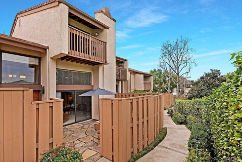 Terrific View Townhome in desirable Woodlands Complex. Well appointed 3Br/2.5Ba unit offers ample sized Entertainers court yard with natural stone patio. The homes spacious Living Room is flooded with light from multiple windows & it includes a fireplace and surround sound. The formal dining room overlooks the living room and courtyard and benefits from the same bank of windows. Chefs kitchen, includes “Dine-at-Bar”, breakfast area with views and granite counters w/full height backsplashes. Ample cabinet space with hidden t.v. cabinet, appliance garage, stainless steel appliances & recessed lighting complete the space. The Master suite offers un-obstructible views of Cowles Mountain, balcony, ceiling fan, bathroom w/dual vanity, travertine shower surround and generous sized walk in closet. Both ancillary bedrooms include mirrored closet doors and ceiling fans, bedroom 3 includes a luxury Murphy bed. Guest bath boasts a luxurious jacuzzi tub and travertine surround. Ample sized two car garage includes work bench, heavy duty storage shelves and top notch washer & dryer. The Woodlands complex offers ample guest parking, pool, spa and abuts Aztec Park. Excellent freeway access & proximity to dining, shopping, entertainment! Welcome home!