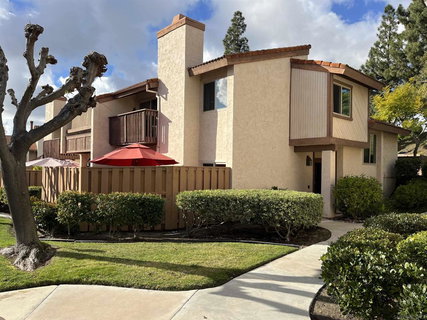 Spacious remodeled highly upgraded 3 bedroom 2.5 bath end unit located in the desirable Woodlands complex. 2 car garage with direct access to home. Attractive slow close kitchen cabinets with quartz counter tops, fireplace, dual pane windows, vaulted ceilings, mirrored closet doors, laminate flooring, ceiling fans, balcony off master bedroom, recessed lighting, upgraded staircase, private patio great for BBQ's and entertaining. The refrigerator, washer & dryer convey. Upgraded heater and newer AC unit. Great location within complex and close to community pool and Aztec Park.