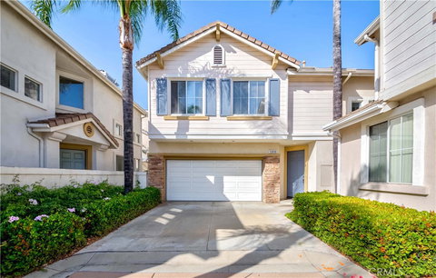 Welcome to this exquisite home nestled within the prestigious Hillsborough Collection of La Mirada! Discover modern sophistication in this residence that seamlessly blends contemporary design with functional craftsmanship. As you enter, you'll be greeted by an inviting ambiance with lofty ceilings and abundant natural light, creating an airy and spacious atmosphere. Refined features such as wood floors, stylish window treatments, and plush carpeting elevate the comfort and elegance of the living spaces. The gracious living room sets the stage for relaxation and social gatherings, while the adjacent dining area offers an elegant backdrop for hosting intimate dinners. The cozy family room with a fireplace provides a cozy retreat for unwinding after a long day. The well-appointed kitchen boasts sleek tile floors, granite countertops, custom cabinetry, and modern appliances, making cooking and entertaining a delight. Upstairs, the serene primary suite offers a tranquil escape with ample closet space and a luxurious bathroom. Step outside to the private backyard oasis, perfect for outdoor entertaining or quiet relaxation. With a two-car garage and driveway, convenience is at your fingertips. Situated in the gated Hillsborough Collection community, residents enjoy access to amenities such as a pool, spa, play area, and sports court, adding to the lifestyle of leisure and recreation. Conveniently located near shopping, dining, and schools, this home offers a perfect blend of sophistication, comfort, and modern living.