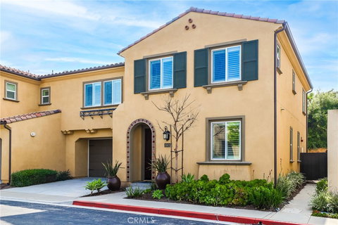 The Olive Walk community in La Mirada is a cozy neighborhood with 33 homes. Built in 2018, this 2170 square foot house has 4 bedrooms and 3 full bathrooms and is one of the biggest models in this newer and well-maintained community. Upon entering the home, you will be impressed by the high ceilings, the recessed ceiling lighting, and the marvelous open floor plan, which creates a seamless connection between the living room, the dining room, and the kitchen. The spacious living room will allow you to create multiple seating areas and has ample wall space to accommodate even the largest flat screen TV. The inviting open kitchen has a large kitchen island and is equipped with beautiful white cabinets with matching white quartz countertops as well as all stainless-steel appliances. The warm tones of the tile flooring and the backsplash provide coordinating accents and beautifully define the space. With plenty of counter- and cabinet space the kitchen is a chef’s delight. Adjacent to the kitchen area there is convenient access to the oversized patio that provides sufficient outdoor space for entertaining family and friends. Rounding out the first floor is a guest bedroom and a full bathroom.