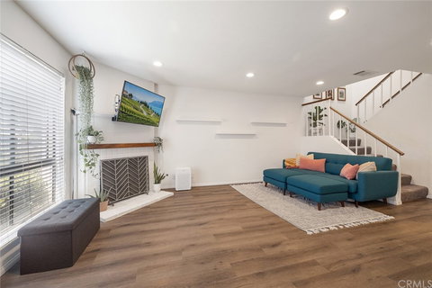 Rarely on the market! Nestled in the wonderful community of Embassy Park La Palma. This home boasts of 2 bedrooms and 2 bathrooms, with a fantastic Open floor plan that allows an easy transition from the living room to the dining room and a functional upgraded kitchen. Kitchen upgrades include a granite sink, new Quartz countertop with breakfast bar. Tastefully remodeled and meticulously maintained, this home features Central Air and heat, New Luxury Vinyl flooring throughout, New carpet on stairway, Recessed Lights, New Water Heater, New Water Softener, upgraded bathrooms, remodeled walk-in shower and freshly painted interior. On the second level you will find 2 sizable bedrooms and a full bathroom with an extra long vanity. Escape into the luxurious Master bedroom with elegant Cathedral ceiling plus gorgeous new flooring giving a sense of grandeur. The guest bedroom is equally bright and spacious with its own Walk-in Closet. Laundry is conveniently located in the attached 2 car garage. Enjoy the community pool and spa, guest parking is available throughout this Gated community. Very low HOA, located close to award winning AUHSD schools or test to Oxford Academy, close to shops, restaurants and more. Truly one of the best homes with the Best Value in La Palma today! Welcome to 4856 Embassy Circle and welcome home!