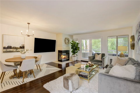 LOCATION, LOCATION, LOCATION!!! A fabulous view awaits you in this stunning 3 bedroom, 2.5 bathroom condo. This home has been completely remodeled and is move-in ready. Enter into a large private courtyard that’s ready to enjoy and entertain. This home features an open and flowing floor plan with fireplace and French doors leading to a patio with beautiful views of the hillside and green lush trees. The gourmet kitchen is equipped with top-of-the-line appliances and a cozy kitchen nook with banquette seating. The main floor primary suite has amazing views of the hillside, wall-to-wall mirrored wardrobe, an en-suite bathroom which includes travertine flooring, a large vanity with dual sinks, a walk-in shower, and a sky light bringing in an abundance of natural light. The downstairs level comprises two large bedrooms with wall-to-wall mirrored wardrobe doors, sharing an updated bathroom with a tub shower combo. One of the bedrooms has a slider leading to a beautiful private serene backyard with new white vinyl fencing and a private gate. Additional features include direct access one-car garage with epoxy flooring, laundry and air conditioning. No one above or below you. Resort Style living with two pools and spas, tennis courts, basketball court, sand volleyball and a gym. This condo is the largest floorplan and newest section of the community. Conveniently located near the Los Olivos Shopping Plaza and the 405. Close to hiking and biking trails, nature preserves, and the renowned Laguna Beach. Hurry, this gem won’t last.