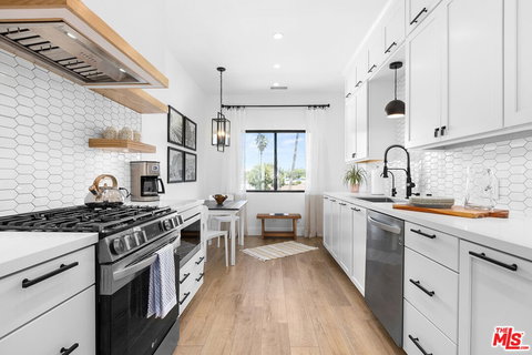 Unique offering from a talented high end designer who brought all her tasteful finishes into this impeccable renovation. This bright open floor plan was reconfigured to maximize the flow of natural light and capture the greenery and beautiful mountain views from most angles of this well appointed top floor unit. A spacious living room with a formal dining area and gas fireplace invites you to this warm and inviting space. An oversized balcony allows for a great indoor/outdoor flow and entertaining. The unit is equipped with new recessed lighting, globe light fixtures, and beautiful chandeliers. This unit has new Euclid run waterproof laminate floors throughout with a blend of impeccable designer tile in the bathrooms. The kitchen is fully equipped with pristine details from floating shelves to a tasteful choice of backsplash and unique cabinet handles, soft closing cabinets, custom tile, seamless quartz countertops, LG stainless steel appliances, designer light fixtures, and a breakfast area. An in unit laundry room with a service entrance has plenty of cabinets and storage space. New HVAC, updated electrical, double pane windows, Honeywell thermostat, multiple barn doors, dimmers on every room, and a keypad lock on the front door are some of the features this full renovation has. Rooms are sizable and spacious, with the primary bedroom boasting a walk in closet, en suite bathroom with a large walk-in shower, built-in bench, and a beautiful vanity with LED backlit mirrors. The second bathroom offers an extra large soaker tub with a great vanity, detailed tile floors, and impeccable finishes. Two side by side parking spots and additional storage space are included with this stunning unit. The gated complex offers a community pool, spa, and sauna. Close to shopping, restaurants, parks, and major freeways. Don't miss it!