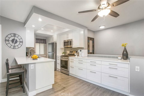 Beautiful Reimagined Luxe Condo Hits the Market! Step into a world of refined elegance where sophisticated design meets modern convenience. Boasting an expansive Open-Concept Layout, this residence seamlessly blends comfort and functionality, offering an effortless flow between the GOURMET Kitchen, Dining Area, and inviting Family Room. The Chef’s Kitchen is a true Showpiece, thoughtfully Redesigned to Open and Enlarge the space adding a sleek Breakfast Island and a wall of counters & extra cabinet space. Custom cabinetry w/elongated stainless steel hardware & pull out drawers provide exceptional storage, while Quartz countertops, Stainless Steel appliances, and designer finishes create an atmosphere of effortless luxury. State-of-the-art upgrades include a 5-burner Gas Range, Built-in Microwave, and elegant single-basin sink with a contemporary Stainless-Steel faucet, all complemented by a chic decorative backsplash and 2 USB-integrated outlets. Featuring "Dual Primary" Bedrooms, with one bedroom having its own "En-suite" Bathroom and Walk-in Closet. Each of the bedrooms has their own private access to the outdoor balcony, which extends the entire length of the residence making it a perfect setting to take in the breathtaking Saddleback Mountain VIEWS! Every detail has been meticulously curated, with updated bathrooms to include Newer Vanity & Fixtures, Lighting, Mirrors and Flooring. Other notable upgrades include: Laminate Wood Floors, Recessed Lighting with newer Light Switches w/Dimmers, Interior Paint, Ceiling Fans, Stainless Steel Hardware throughout (including Door Knobs), and 4" Baseboards throughout. Modern luxuries such as a NEST Thermostat, New Windows and Sliders, and a newer A/C Unit elevate the home’s efficiency and comfort. A spacious upper-level laundry room and an abundance of storage throughout ensures effortless living, while the ATTACHED 1-car garage with DIRECT ACCESS & Built-in Storage provides the ultimate in safety and convenience. Steps to 2 Community Pools/Spas and just a short stroll to the beautiful neighborhood walking trails, Peachwood Park & Tamarisk Sports Park where you'll find a Playground, Basketball Court, Baseball Field, Walking Path, Grassy Area & Picnic Tables. Conveniently located just a short drive to Lake Forest Sports Park & Recreation Center, Irvine Spectrum & Irvine Great Park. HOA fee includes trash. This rare offering is a true GEM so don’t miss your chance to view this SPECIAL property & make an offer today!