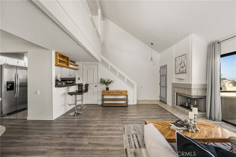 Soaring ceilings, abundant natural light, and a unique layout in the heart of Lake Forest. This beautifully upgraded residence features an open-concept design with dramatic vaulted ceilings, a spacious living room with a cozy fireplace, and seamless access to one of two private balconies, perfect for indoor-outdoor living and entertaining. The kitchen is both functional and stylish with new kitchen appliances such as the fridge and stove, showcasing granite countertops, stainless steel appliances, ample cabinetry, and a breakfast bar that flows into the dining area. A standout feature is the loft-style bedroom, offering a distinctive architectural feel with comfort and privacy, complemented by multiple bathrooms with clean, modern finishes. Additional highlights include central heating and air conditioning, in-unit laundry, generous storage, a detached garage, and additional parking. Located in the highly desirable Le Parc community, residents enjoy resort-style amenities and a prime location near shopping, dining, parks, and major freeways.
