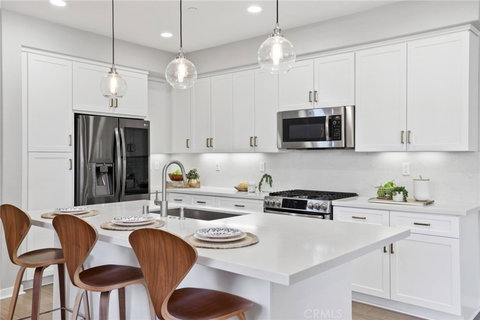 Discover your Dream Destination at Home! Offering a Warm and Organic Aesthetic, this Beautifully Designed Residence is curated to be the Ultimate at Home Sanctuary. Located on a Private Corner Lot featuring 3 Bedrooms + 2 Lofts and 2.5 Bathrooms this Stunning home has everything your family has been looking for and more! An On-Trend approach to design, you are greeted with Custom Wide Plank Neutral Flooring and an Illuminating Light & Bright interior providing the perfect ambiance for your daily routine. The soul of the home begins in the Gourmet Kitchen which has been upgraded throughout with Stainless Steel Appliances, Gas Range, Upgraded Quartz Counter Tops and Quartz Backsplash, White Cabinets, Brass Hardware, Designer Pendant Lighting and beautiful Center Island. The Great Room features a welcoming Abundance of Natural Light. Sliding Glass Doors lead you to the Tranquil Backyard Oasis featuring Ample Space for your friends and family to enjoy year-round! The second floor offers 3 Spacious Bedrooms including the Primary Suite Retreat and Spa Like Primary Bathroom with a Tranquil Walk in Shower featuring upgraded tile stretching to the ceiling. The Third Floor is the Perfect Flex Room for an at Home Office, Gym or Guest Room with views of the foothills and city lights. Additional upgrades include whole house water softener and filtration system, 240-volt outlet in the garage for EV charging. Baker Ranch is ideally located close to High End Shopping, Numerous Fine Dining Options and a short drive to World Class Beaches. Don't forget the Incredible Resort-Style amenities including 3 swimming pools, 8 parks, clubhouse, hiking and biking trails, beach volleyball courts, tennis courts, Dog Park and more. No Mello-Roos and Low HOAs! This one is not to be missed!