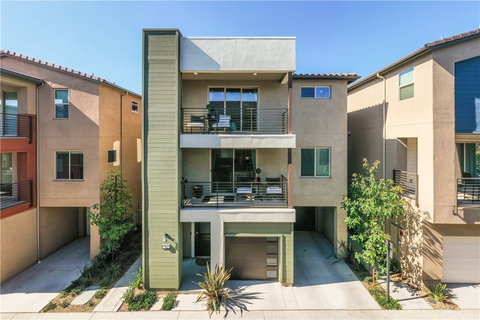 showcases the main living space in an open layout with a covered balcony. Dual owner’s suites are situated on the third floor, one with a covered deck and each with walk-in closets and spa inspired bathrooms. Quartz counters throughout, tankless water heater, and solar panels. The home offers a two-car garage, and a third parking space driveway. The home has over $60,000 in additional upgrades. The backyard is complete with contemporary pavers and plumbed for an outside gas BBQ. Newly installed blinds and curtains are integrated throughout the home. The home features state of the art Wi-Fi, ring door bell, and Ruckus system. Newly installed and oversized (60 inch) fans are located in every bedroom, living room, and dining room. Upgraded luxury vinyl flooring is installed throughout the home. Centrally located in the beautiful city of Lake Forest, CA, Serrano Summit is a master planned community. The community boasts gorgeous views of South Orange County and offers resort-style amenities. Situated just off Bake Parkway, the Serrano Summit is surrounded by nature and recreation Low Tax Rate, low monthly HOA's of $239, No Mello Roos taxes!