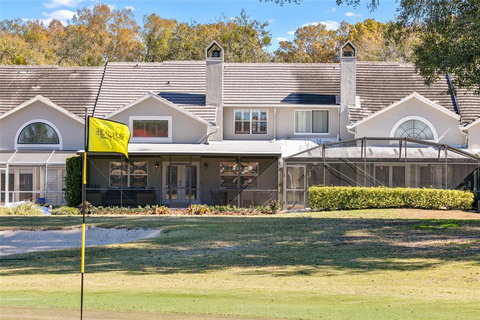 Carefree golf front living in desirable Heathrow, situated on the 17th hole with fantastic sunset water views. Cascade through oak-canopied streets towards this exclusive row of townhomes in Devon Green, where easy living begins with included lawn maintenance and quick access to The Club at Heathrow by car or golf cart. This spacious three-bedroom, three-bath home has enjoyed significant renovations, featuring sprawling wood floors complemented by extensive crown molding and plantation shutters, a gourmet kitchen complete with double wall ovens and warming drawer overlooking the dining and family rooms, plus a lengthy screened-in lanai offering panoramic golf and water views. The third bedroom is located on the first floor and is currently used as an office. Upstairs are double master bedrooms, each complemented by en-suite baths featuring jetted tubs. Heathrow is Lake Mary's iconic luxury golf community where residents enjoy two 24-hour manned entry gates, beautiful grounds, Heathrow's amazing Lake Sawyer Park and immediate access to shopping, dining, hiking, biking trails and major thoroughfares leading to the beaches, the attractions and the airports.
