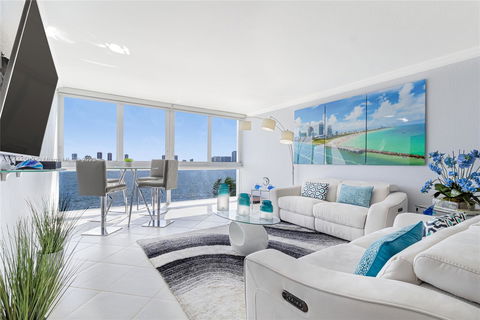 Spectacular modern apartment with direct views from the 7th floor of the intracoastal and Singer Island's skyline with floor to ceiling windows in this all ages building that is located next to the Lake Park Marina. Just a few minutes over the Singer Island bridge to the beach and a few steps across from upcoming luxury high rise condominiums and luxury amenities of Nautilus 220 with prices up to $4 million. The unit is complete with all hurricane impact windows and features two huge bedrooms with a split floorplan. A generous master bathroom with a walk-in closet to accommodate your wardrobe and storage needs. Full size stackable Washer/dryer in unit, water heater is 3 years old, tile all throughout except the 2 bedrooms, crown molding throughout. Furniture is negotiable.