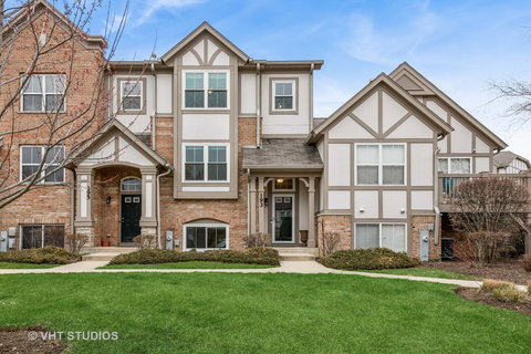 Chic, elegant, and simply stunning, this light-filled townhome has been lovingly maintained and beautifully updated throughout. From the moment you step inside, you'll feel the warmth and care that's gone into every detail. The open-concept main level features a striking double-sided fireplace that adds cozy charm to both the living and dining areas. The updated kitchen is a chef's dream with granite countertops, crisp white cabinetry, and sliding doors leading to a private balcony-perfect for morning coffee or dining alfresco. A convenient half bath and laundry room are also found on the main level. Upstairs, both bedrooms are generously sized and feature ensuite baths. The primary suite is a true retreat with vaulted ceilings, a walk-in closet outfitted with new custom organizers, and plenty of natural light. The finished English lower level offers a bright and versatile space ideal for a family room, rec room, or home office, plus direct access to the attached two-car garage for added convenience. Enjoy all the amenities of sought-after Concord Village, including a community pool and clubhouse. With a brand-new roof installed in 2025, newer windows and doors, updated baths, modern lighting, and new wood blinds throughout, this turnkey home checks every box. Ideally located near shopping, dining, charming downtown Lake Zurich, parks, the lake, and award-winning District 95 schools-this one is a perfect 10!