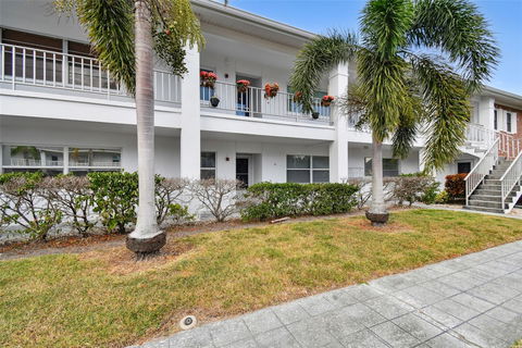 Welcome to your future home in the heart of Pinellas County for a reasonable price! This 2-bedroom, 2-bath, FIRST FLOOR condo has so much to offer. The kitchen has been updated with a backsplash, granite countertops, a fresh look with painted light-colored cabinets, and a dishwasher added in 2018. The entire condo is carpet free, with tile throughout. The kitchen has a pass-through opening, looking out to the dining room/living room combo, creating an open floorplan that is great for entertaining. There is ample privacy for everyone with the primary and second bedrooms located separately with their own bathrooms. Both bedrooms have two large windows to allow extra natural light. The washer and dryer are conveniently located in the primary bedroom and are included in the purchase. The enclosed lanai, not included in the square footage, is tiled, has two large windows and a storage closet. From the lanai, you can follow your own sidewalk directly to the community pool, clubhouse, and shuffleboard. One of the best features of the Bay East One Condo community is the limited leasing allowed. Only one 1-bedroom and one 2-bedroom unit in the building can be leased at a time. You can buy with the comfort of knowing this community is primarily resident owned, building relationships with your neighbors that take pride in caring for their community. Each unit has an assigned parking space with additional visitor spaces. The Trane HVAC system is 2017, and the Hot Water Heater is 2021. Centrally located for an easy commute to Tampa, two airports, award winning beaches, restaurants and shopping. This condo did not flood or have damage during the recent storms.