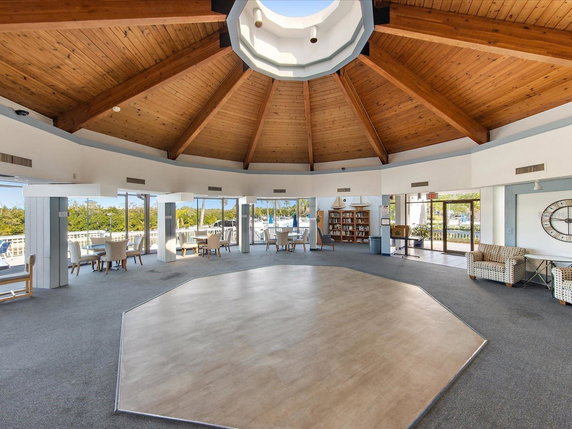 Residents can enjoy a fitness center, several swimming pools, and a spa. There are also tennis courts, including Har Tru surfaces and hard courts for pickleball. The property includes walking trails and access to a private marina. Each unit is pet-friendly, allowing for furry companions.