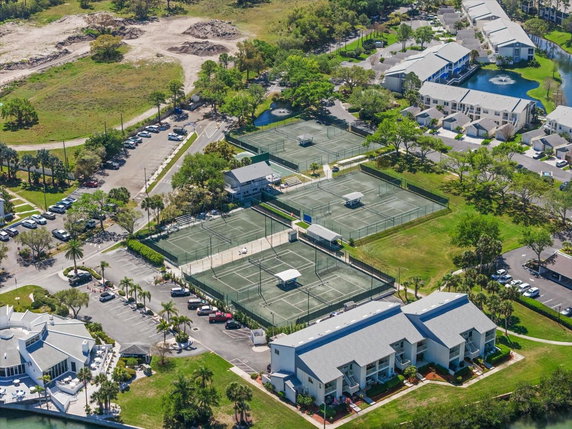 The community spans 56 acres and has many amenities. Residents enjoy access to two pools, including one heated pool. There are multiple Har-Tru tennis courts and pickleball courts. A fitness center and two clubhouses enhance leisure options. Private marina and walking trails are part of the landscape, fostering an active lifestyle.