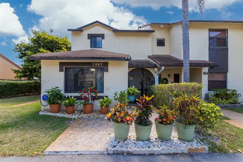 Beautiful 2/2, corner lot townhome with parking at your front door and ample guest parking in close proximity. Enjoy your own secret garden with an extended backyard that includes a seating area where you can enjoy a pool or garden view. Features include a loft style owner's suite, vaulted ceilings, an updated kitchen with new kitchen appliances, double-wide quartz counter tops, new tile flooring, new carpet on stairs and on second level, updated bathrooms, new recessed lighting, large walk-in closet in owner’s suite with dark wood organizing system, hurricane impact windows and doors, and new washer and dryer. Most upgrades were done in 2020/2021. Lease in first year. Low HOA fee of $185.00 per month. Loft style owner suite vaulted ceilings.