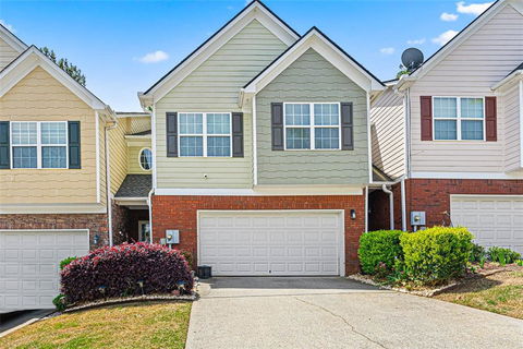 Enjoy this beautifully maintained two-story, two-car garage townhome with 3 bedrooms and 2.5 bathrooms. Conveniently situated in the well-kept and welcoming community of Patriots Point. Positioned for convenience, this gem is a stone's throw away from shopping centers, delectable eateries, major expressways, and the esteemed Gwinnett Technical College, ensuring you're always at the heart of the action. There is plenty of space in this home! Be greeted by a grand 10-ft two-story entryway that sets the tone for the spacious and airy layout. The open living area features a captivating corner fireplace, creating the perfect ambiance for cozy evenings in. Gleaming hardwood floors span the main level, offering both elegance and easy maintenance. The expansive open kitchen boasts stainless steal appliances and direct views of the living space and access to the private patio with scenic views of nature. Ascend to the upper level to discover three generously sized bedrooms, each offering ample space for rest and relaxation. A shared full bathroom serves the secondary bedrooms, while the primary suite awaits with a tray ceiling, walk-in closet and a full bathroom featuring a separate garden tub, shower, and double vanities. Roof is 2 years old!