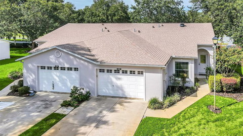 Beautiful Duplex Villa on a large corner lot in Pennbrooke Fairways Golf Community (24-hour manned front gate), 2 bedrooms, 2 bathrooms, galley kitchen, screened and carpeted lanai, interior laundry room, and a 1 1/2 car garage (room for a golf cart or workshop). The roof was replaced in 2020 and the exterior was painted in 2021. All windows were replaced in 2020 and are vinyl, double-hung, low-E, and dual-pane glass with a transferable warranty. The A/C (heat pump) was replaced in 2016 and is a Carrier 15 SEER with a Nest thermostat and a dehumidification function. There are two smart Nest Protect smoke/CO alarms. The garage door opener has been upgraded and includes MyQ smart controls and an exterior keypad controller. The great room has vaulted ceilings, a decorator ceiling fan, and a slider door to the lanai. The kitchen includes all appliances (range and dishwasher are newer), a pantry, neutral laminate countertops, plant shelves, and a porcelain sink. The laundry room has a pocket door to the hallway and includes a washer, dryer, utility sink, air conditioner, and water heater. The Master bedroom has a slider door to the lanai, a remote ceiling fan, a dressing area with 2 sinks, a very large walk-in closet, and the walk-in shower and toilet are behind a pocket door. The second bedroom has a ceiling fan and a large wall closet and is located across the hall from the 2nd bathroom, which has a linen closet and tub with shower. The monthly HOA fee includes cable tv, 400MB internet, external home maintenance, landscaping maintenance, irrigation, twice-a-year gutter cleanout, and weed/pest control. You own the land and the duplex, but the HOA maintains nearly all of the exterior. Great for both seasonal and permanent residents!
