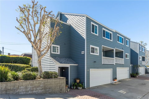 Welcome to the upgraded, turnkey, 3 bed 3 bath townhome, that you have been waiting for! This very well cared for home, sits on a quiet street in a charming complex. Features include: Wood floors throughout, newer HVAC unit which includes A/C, fireplace in living room, newer double pane windows, newer roof, re-piped plumbing, new tiles in bathrooms, Nest thermostat and doorbell camera, all new LED lighting, custom built-in master closet, vaulted ceilings in master bedroom, which has en suite bathroom, granite countertops in kitchen, stainless steel appliances, marble countertops in bathrooms, custom sheer shades in upstairs bedrooms, balcony off of dining area, adorable wood deck in back patio, and attached garage. All of this is in close proximity to shops, freeways, and just 6 miles away from our beloved CA beaches. $300 HOA includes water and trash.