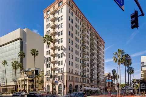 Deluxe Ocean View condo in the historic Cooper Arms building in the East Village Arts District. Light-filled large corner unit with over $150,000 of recent upgrades, a private balcony with stunning ocean, downtown, and mountain views. Custom built kitchen with modern European cabinets, Viking appliances and Concrete countertops. Bedroom features wood floors and plenty of storage. Luxurious bathroom with oversized stand up shower, new vanity and beautiful tile work. High Walk Score of 97 – close proximity to the beach, restaurants, coffee shops, groceries, shops, transportation, entertainment, and more! This is truly Downtown living at its finest – don’t miss out on this incredible opportunity.