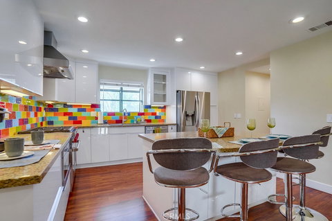 FABULOUS, MODERN TOWNHOUSE IN "LAKEWOOD VILLAGE" ! Highly Sought After "Village Grove" Complex w/ Streams, Waterfalls, Pool, Spa, Clubhouse, Koi Ponds, Gated Entry, Pet Friendly and HOA pays for Water & Refuse Service ! This Unit is Tastefully Upgraded thru-out w/ High End Finishes and a $100k NEW KITCHEN REMODEL !!! Private, Gated Front Entry Gate leading into Tiled Patio w/ TRAEGER BBQ and Lovely Outdoor Seating Area. Double Door Entry into Formal Landing w/ Coat Closet. Step down into Sunken Living Room/Great Room w/ Luxury Plank Vinyl Wood Flooring, Cozy Modern Gas Fireplace w/ New Tile Surround & Matching Entry Tile and Patio Tile... Open Concept 30 ft.Ceilings and Stairway leading up to GORGEOUS CHEF'S KITCHEN - Raised Ceilings w/New Lighting, White Quartz Island w/ Seating, Soft Close European Style White Cabinets, Italian Backsplash, 36" Wolf Gas Stove & 6 Burner Convection Range w/ Optional Wok Grate & Rolling Rack, Zephyr Restaurant Quality Hood, Sharp Drawer Micro, Moen Smart Faucet w/voice & motion tap & boiling water tap in sink, LG Refrig & Dishwasher...Built in Hutch, French Remodeled Half-Bath,Walk-In Pantry and Lazy Susan/Storage Organizers ! Upstairs LOFT/OFFICE could be 2nd Bedroom w/ Blt.In Cabinets/TV stand, leading to Large Mstr.Suite w/ 3 Mirrored Closets, Sunset Views, On-Suite Rmdl.Bathroom w/ Walk-In Shower & Dbl.Sink Quartz Counters. Private Double Car Garage w/ Workshop, Storage Cabinets, LG Washer/Dryer & New Door & Wi-Fi enabled opener. ALL THIS AND ITS A SMART HOME w/ Nest Thermostat,Dimmable LEDs and Alexa Voice Commands ! LAKEWOOD VILLAGE LIVING W/OUT THE YARD MAINTENACE ! Walk to Pan-Am Park, Heartwell, Schools K to College & Shops, Post Office and Restaurants ..... Close Freeway access to 405, 605, 91 and 710 ! MUST SEE- HIGHLY SAUGHT AFTER COMPLEX, WON'T LAST !!!!
