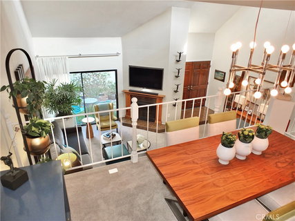 UNIQUE OFFERING--MUST SEE!!! Stunning Lakewood Village townhouse--free-standing--no common walls-- in the beautiful gated community of Village Green. This highly upgraded townhouse is the closest a person can get to single family living. While tax data reflects a 2 bedroom unit, the second bedroom was modified to allow for an informal den/office area. Enter through the private enclosed brick patio with double door entry OR enter from your own personal 2 car garage, one level below. Primary entry level features the living room with cathedral ceilings, skylights, gas fireplace, custom recess above the fireplace for a TV and sliding doors to the private brick patio. The next level showcases the newly remodeled kitchen, ample dining room and guest bath. Let’s talk KITCHEN! Professionally designed and remodeled in 2023 with custom built cabinetry, man-made quartz countertops and all new appliances, Blanco sink, new down-lights, induction cooktop (seller will consider including appropriate cookware), and walk-in pantry. Guest bath has been remodeled with a custom vanity and details. Reaching up one more floor you enter the informal den/office area (former 2nd bedroom) which is open to the floors below. Custom cabinetry here as well and the skylights provide plenty of natural light. Primary suite has dual paned windows and includes a remodeled bath (2021) with a separate tub, glass enclosed shower and dual sinks. New carpet throughout (2023). 200 AMP electric service (2023). New garage door opener (2023) and new skylights (2022). Tile roof (2022). Nest thermostat (2023). The community includes ample guest parking, a pool, in-ground spa, clubhouse, and beautiful natural Koi ponds with waterfalls. HOA dues include trash, water, and exterior common (vs. single use) area maintenance. Close to Pan American Park, Lakewood HS, Bancroft Middle School, public transportation and shopping. This is clearly REFINED living for the selective buyer.