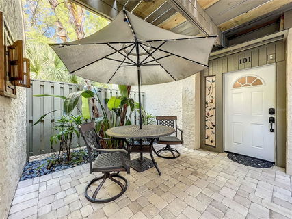 Gorgeous 3 bedroom 2 bath Condo in the Springs. This home rests at the end of a quiet cul de sac with a lovely courtyard and fenced backyard with patio. Home includes crown moulding throughout, exposed cypress beams, 6" detailed base trim, beautiful semi-custom cove cabinets with exotic granite with matching island that is on wheels that can be used as a buffet, easy to maintain travertine floors, large living room with adjacent sitting room that spills out into a zen garden with Mexican beach pebbles and lovely bamboo to relax under and enjoy the wonderful Florida weather. The master bedroom is a large room that also has it's own access to the zen garden, walk in closet, and beautiful master bath with textured wave porcelain wall tile. The guest bath is made of beautiful carrera marble. This community has its own pool or you can take a short walk to the main Springs beach. The Springs is a gated community with nature trails, horse stables, boat/RV parking, tennis and pickle ball courts, basketball, beach, springs, river access, clubhouse, and a community pool. Close to I-4 with easy commute to two international airports, amusement parks, Lake Mary, Historic Sanford, Historic Mount dora, and Downtown Orlando. This home is one of a kind. Call today for a showing while it lasts.