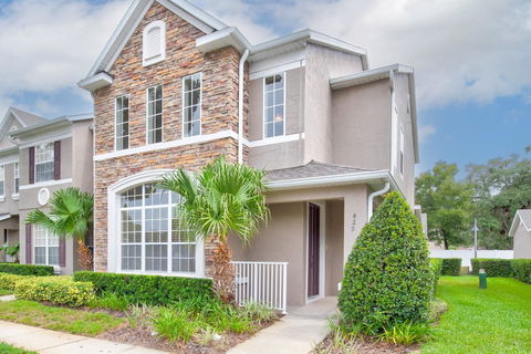 Beautiful 3/3.5 END UNIT Townhome in Gated Highcroft Pointe with OVERSIZED 2 CAR Garage! DOWNSTAIRS PRIMARY SUITE and 2 Bedrooms upstairs ALL WITH PRIVATE EN SUITE BATHROOMS, are some of the many things you'll love in this home. ENJOY LOW MAINTENANCE LIVING - Your HOA fee of $400 per month takes care of the Building Exterior, Roof - which was replaced in 2022, Building Insurance, Grounds Maintenance, common areas and more! FLOORPLAN IN PHOTOS! When you enter the front door you are welcomed into the living room and dining area with soaring ceilings, warm wood floors and light filtering in through the tall front windows. The kitchen is open to the family room and features a breakfast bar, solid surface counters, wood cabinets and a 2023 whirlpool refrigerator. Relax outdoors in the private patio/courtyard nestled between the garage and townhome. The primary suite features a walk in closet, soaking tub and separate shower. Upstairs you will find 2 bedrooms with 2 full baths and a large loft with a closet that can be enclosed to create a 4th bedroom or enjoyed as is. AC was replaced in 2016. Great location with easy access to I-4, shopping, dining and healthcare. Welcome home.