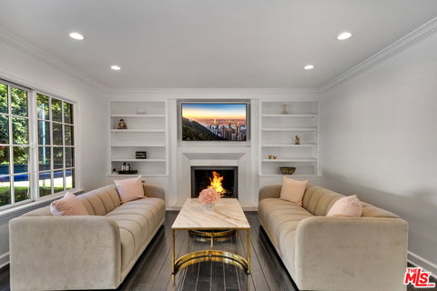 Modern design and old-world charm unite in this completely reimagined home in coveted Bel Air Ridge. Step through the private entry to find a light-filled home with an array of desirable features including custom lighting, redesigned bathrooms, and marble and wide-plank wood flooring throughout. The open chefs kitchen is ideal for hosting and features custom cabinetry, Wolf appliances, seated island, and serving window, and leads to the dining room with French doors opening to the pool area. The inviting living room is designed for indoor/outdoor living and includes a fireplace, built-in shelves, and glass doors leading to the grounds. Upstairs youll find a large primary suite with soaking tub, walk-in shower, and private balcony perfect for sunset evenings.Unwind outside in the large pool and spa, or relax on the manicured lawn.With 24-hr security, clubhouse access, and tennis courts, this impeccably curated home offers luxury and refinement in one of L.A.s most idyllic regions.