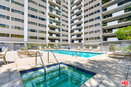 Residents enjoy impressive views of the city, mountains, and sunsets from expansive balconies with floor-to-ceiling windows. The building provides full-service living, with 24-hour valet parking and concierge services. Amenities include a fitness center, sauna, recreation room, and resort-style pool.