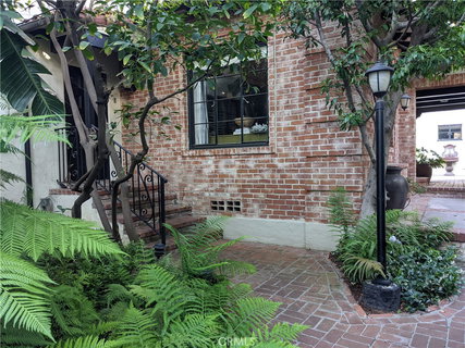 Located in the heart of Westwood Village, this charming home with beautiful courtyard has the perfect blend of vintage charm and modern convenience, preserved as a designated historical cultural monument property. The first floor features a family room with a fireplace, dining room, updated efficient kitchen with stainless steel appliances and plenty of cabinet space, stackable washer/dryer and powder room. Two bedrooms upstairs are bright and spacious -- the Master suite boasting over-sized windows, 2 closets and own bathroom. Additional bathroom has large relaxing bathtub separate from shower. Upgraded Nest thermostat and carbon monoxide detectors, hardwood flooring and granite countertops are present throughout, and large windows with plantation shutters give a private view of surrounding fruit trees and greenery. Includes detached, private 1 car garage, with additional city permit street parking. This unique gem is on a quiet tree-lined street, and step from restaurants, grocery stores, shops and cultural experiences. Walking distance to UCLA and pet-friendly building!