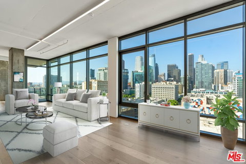 Here is a rare opportunity to own a trophy residence at Luma, one of the most awarded buildings in South Park. With 2,879sf of living space, which is a combination of a north east corner and a north west corner unit, this one of a kind residence is comprised of 4 beds, 3 baths, and an office. The creative open floor plan is flooded with natural light thanks to the floor-to-ceiling windows that span the entirety of the unit and frame the explosive unobstructed panoramic views of the DTLA skyline and mountains beyond. No expense was spared in the creation of this spectacular soft loft finished with the finest materials and features which include floating walls, blonde white-oak wide plank flooring, custom cabinetry throughout, Le Grand LED lighting complimented by a "Mi-Light" system throughout, Thermador appliances, an electric fireplace, electric window shades (bedrooms), a screening room with custom soundproofing, and tiled balconies to name a few. The residence also benefits from ample parking as it includes 4 DEEDED PARKING SPACES with an EV charger. Ideally situated in the heart of South Park, Luma offers a bevy of amenities including a 24 hour front desk concierge, a heated pool & spa, gym, BBQ grills, and outdoor areas perfect for entertaining. Live your best life in this breathtaking luxurious residence that is fit for the most discerning buyers.