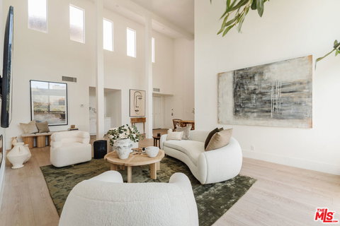 A thoughtfully renovated true Penthouse at the epicenter of Beverly Hills, Holmby Hills, Century City, and Westwood, delivering dramatic scale, radiant natural light, and skyline views in one of the Westside's most coveted pockets. Soaring ceiling heights create architectural volume rarely found in condominium living. Walls of glass flood the interiors with sunlight while framing sweeping Century City skyline views, vibrant sunsets, and even a subtle peek-a-boo ocean view on clear evenings. The grand living room is anchored by a custom fireplace and wide-plank wood flooring, offering true entertaining proportions. An oversized private balcony extends directly off the main living space, creating seamless indoor-outdoor flow and a front-row seat to the skyline at golden hour. The kitchen connects effortlessly to the living area, designed for conversation, hosting, and everyday ease. Privately positioned, the primary suite serves as its own retreat, complete with a fireplace, generous walk-in closet, and spa-inspired bath with dual vanities and an oversized shower. A second expansive balcony spans the bedroom wing, offering a quieter outdoor escape with open sky, fresh coastal air, and stunning sunset views. The secondary bedroom adapts easily as a guest suite or sophisticated office. In-unit laundry and two side-by-side secured parking spaces add practical convenience, a true luxury in this location. Residents enjoy a pool, spa, gym, and sauna, all moments from world-class dining, shopping, UCLA, Beverly Hills, and Century City. Penthouse living. Dramatic volume. Two oversized balconies. Skyline views. Sunset exposure. Future expansion potential. Rare, Refined and Ready!