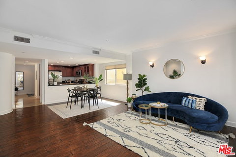 Welcome home to this unique 3 bedroom, 3 bath, double-level Mediterranean style condo in a highly sought after area of West Los Angeles. The home is located on the top two floors of the four story building. On the first floor, a stunning kitchen features stainless steel appliances and overlooks the formal dining room that flows seamlessly into the spacious living and dining room. Accented with hardwood floors that extend throughout the home, a cozy fireplace and french doors that lead out to the first of two private balconies. Ascend up stairs to a guest bedroom with a HUGE walk-in closet and private bathroom. Across the hall, the enormous master suite boasts a grand closet perfect for any fashionista, its own private balcony with street views and a beautiful en suite with a dual vanity. In-unit laundry can also be found on the second floor. The unit is on a stand alone building, and has no shared walls with any other neighboring unit.