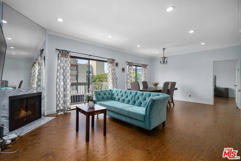 This 2bed/2bath, extra bright, west-facing condo is perfect for a first-time homebuyer or an investor who wants to add to their rental income. Laminate flooring, recess lighting and crown moldings. One continuous balcony throughout master and living room. Guest bedroom has a private balcony. Working fireplace. 2 Tandem parking spaces, in-unit washer and dryer, spacious master walk-in closet and large linen closet provides ample storage. Bathrooms and kitchen could use some TLC. However, unit has been owner-occupied for the past three years and has been well taken care of. Small building of only 9 units, 3 units per floor. Roof was recently replaced and building has solar panels. HOA just voted to re-paint and re-floor the hallways. Just south of Santa Monica Blvd on Glendon Ave, just minutes away from UCLA and the 405 Freeway, this serene condo is nestled in a private and tree-lined, conveniently located street.