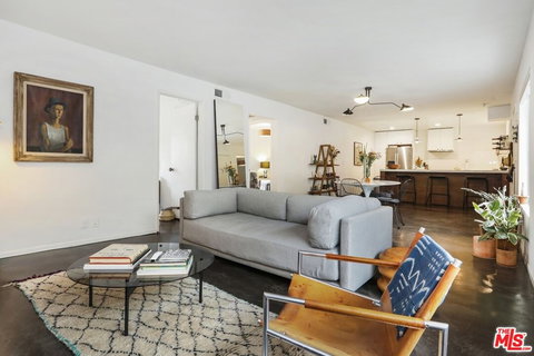 This incredible condo is a top floor, corner/end unit, located in a very desirable part of Silver Lake. The unit has been wonderfully updated throughout and features a beautiful modern kitchen, contemporary bathrooms and amazing concrete floors. The striking designer kitchen is open and features high-end appliances, slate floors and a breakfast bar accented by warm walnut wood. The light and bright primary bedroom has a large modern en suite bathroom. The washer/dryer is also conveniently located in the closet. The third room is very versatile and could be used as a bedroom or office and is located on the other side of the unit for ideal privacy. The unit comes with two tandem covered parking spots, a gym room, and community pool. The location is mere minutes to Whole Foods 365, Silver Lake Wine, the Library and the reservoir.
