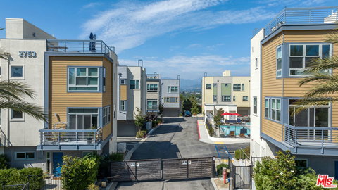 In the coveted, secure & gated LATITUDES community is this 4 bed / 3.5 bath townHOME. Built in 2016, this fabulous corner home w/views from nearly every window is situated in the heart of Silverlake Hills! Enter a formal foyer w/powder room. Up one level is the spacious kitchen w/center island, walk-in pantry, custom cabinetry and stainless, Viking appliances. Opens to an expansive, living room & dining room. Off to the side is a private bedroom and bath. Up another level are two guest suites that share a sizable bath w/dual vanities and tub/shower combo. The primary suite has incredible views w/tremendous light, huge walk-in closet & en-suite bath w/dual vanities. Panoramic views from the massive roof top deck w/plenty of room for dining, lounging, entertaining, or private gym! Other features include high ceilings; 2nd level in-unit laundry; attached garage w/ample storage; resort-like community pool & spa. Close to the best of Silverlake, including trendy shops, restaurants, farmers' market, and the famed Silverlake Reservoir.